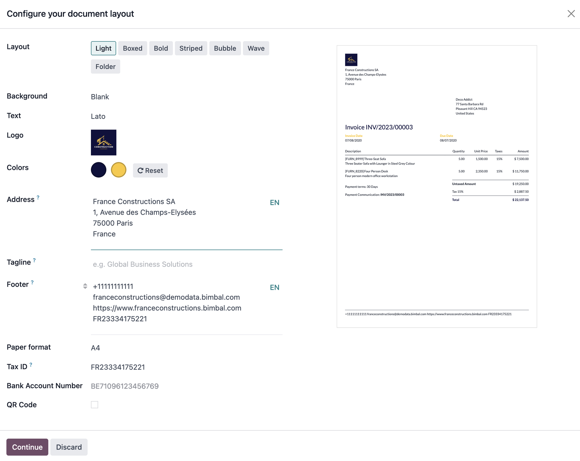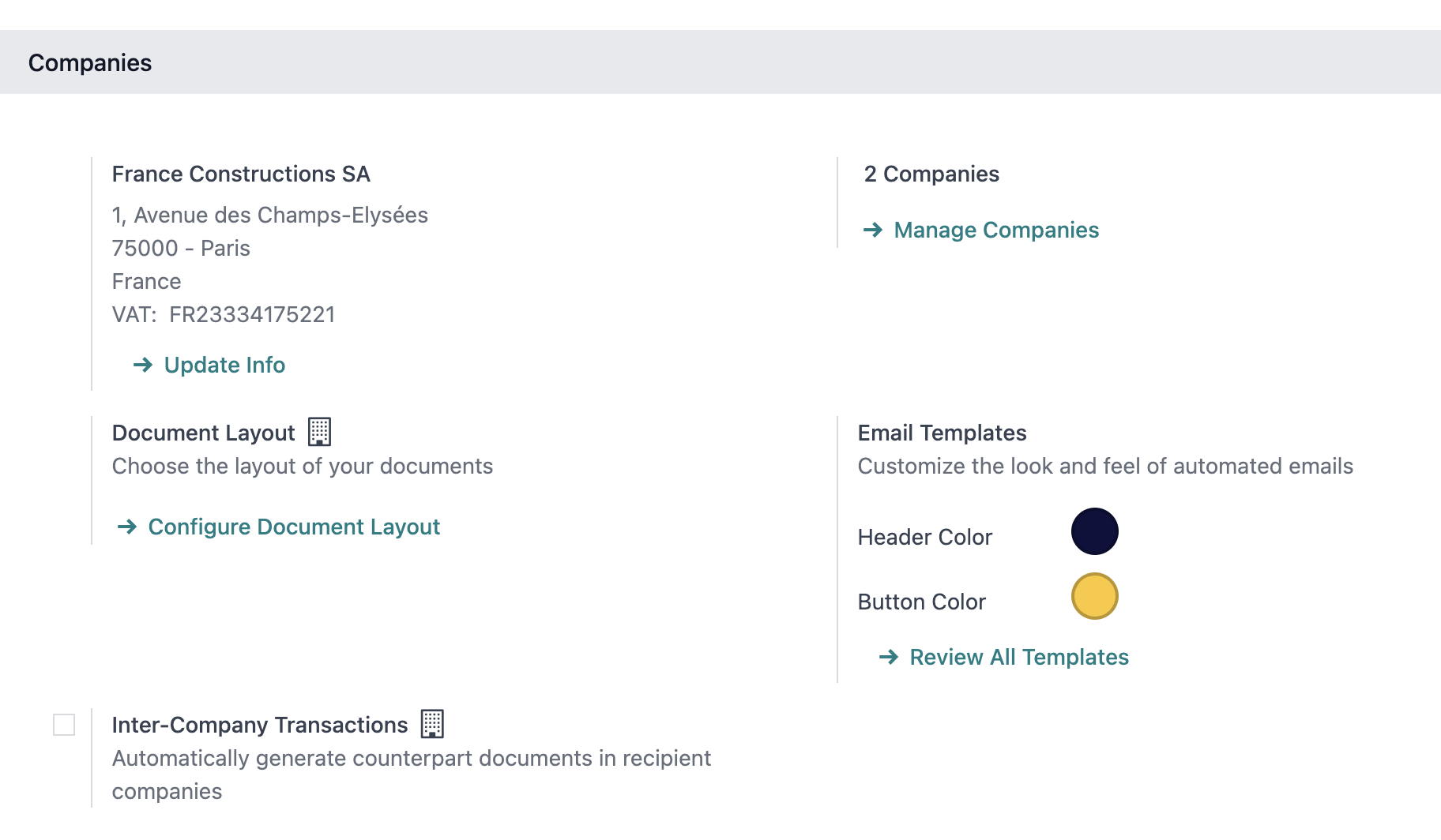 For each company, you can customize a large number of elements: