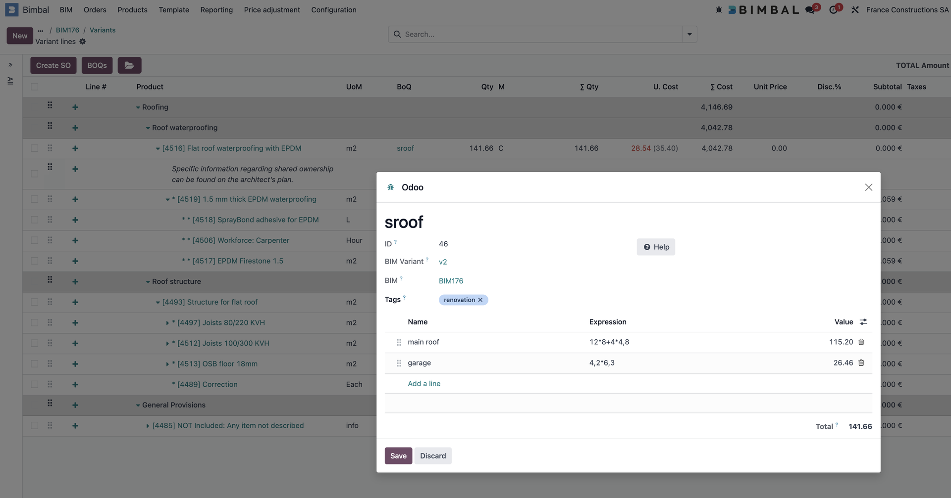 - The user named this BOQ: “sroof”
